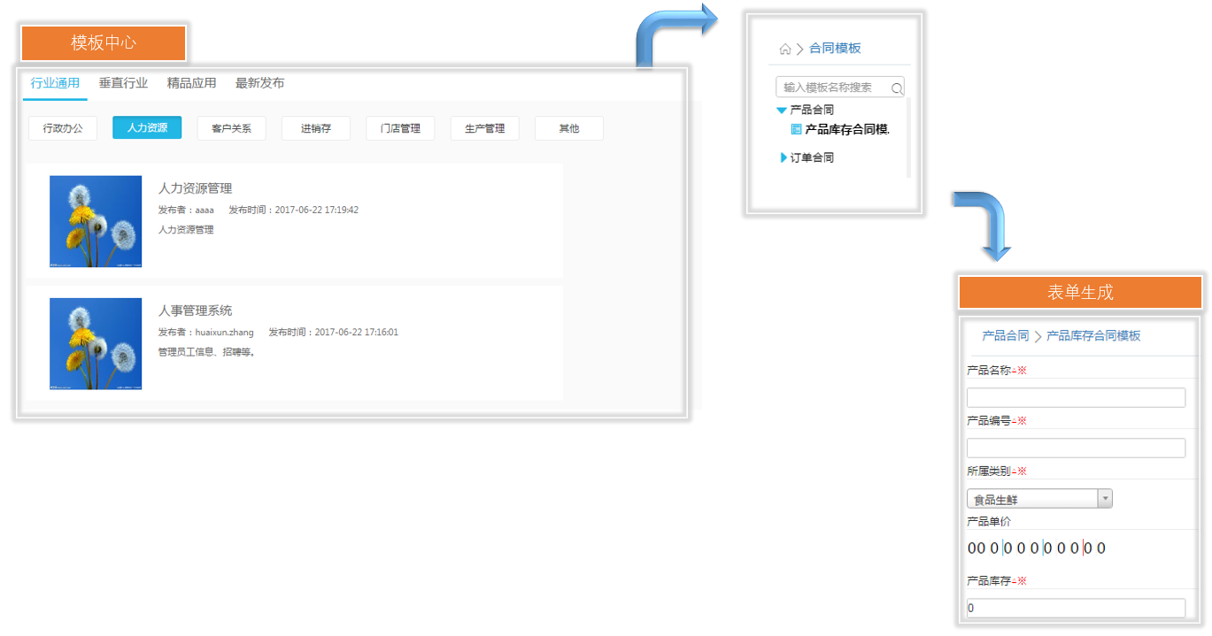 模板中心提供行业通用模板,用户可以根据自己的需求选择模板创建自己的应用,也可对模板进行修改,创造属于自己的应用模板。