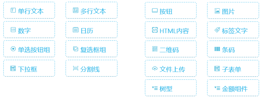 除了常用的单行文本,数字,日期等控件之外,增加了二维码,条形码,子表单等控件使用场景更广泛。